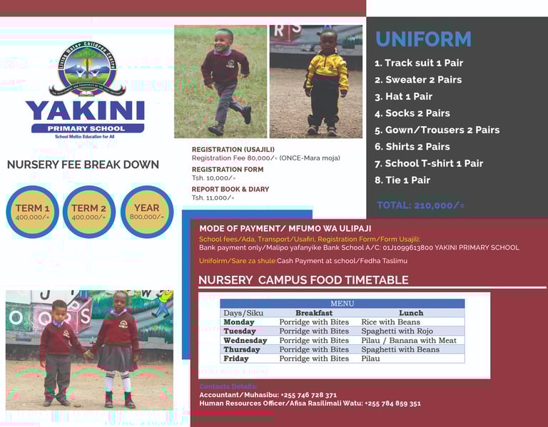 At Yakini Nursery, the fee structure is designed to provide transparency and support for families in planning their childcare budget. The nursery offers a comprehensive breakdown of costs, which includes registration fees, monthly tuition, and additional services such as meals, activities, and supplies. Overall, Yakini Nursery is committed to delivering quality care and education while maintaining an open line of communication regarding fees.